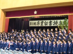クラス代表らによるメッセージ、思い出、そして「大地讃頌」「はばたこう明日へ」の大合唱は、来賓席の市長や議員の心にも響いたでしょうか。