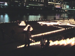 今度は河川敷のステージ辺りに電飾? と思いきや、これが8000個のキャンドルによる演出でした。