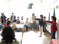 自分たちが考えた遊びを楽しみながら、来園者へのアピールも忘れないシッカリ者の子どもたちに脱帽! ふと、何十年も前に過ごした仁川幼稚園での日々を思い出してしまいました。