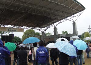 わたしは小さな選手たちの誘導係。幼・小・中のPTA会長トリオで障害物競走のデモンストレーションもしましたが、「位置」につくと、トシって忘れるものですネ。^^;