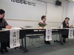 笑顔でコメントしていた中川市長が、「千種に新しい道路をつくるのをやめてほしい。自然破壊やと思う」との声に、「調べとくね・・・えっ、もしかして荒地西山線? あー、あの・・・」としどろもどろになる一幕も。