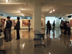 秋の開館2週目の日曜日。上映会を企画した「宝塚文化を紹介する会」には議員の先輩・杉本和子さんやタウン誌編集者、文化・芸術方面で活躍中の方がたがいて、まちの “お宝”を発信していこうという気迫が伝わってきました。 *2Fは「中畑艸人(そうじん)作品展」