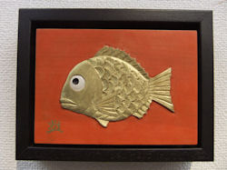 「今のあなたはこんな時期」。すこし前、展示品のおさかなと目が合って購入を考えていたとき、作者の板彫り作家・数田来介さんが勧めてくださったのがこれです。4部作の2番目で、妙に納得してしまいました。