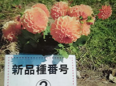 添え文をみてわかりました。一年前に宝塚ダリア園に出かけたとき、新種の名称を募集していて、私がダリアのカレンダーにつられて応募したものが採用されたとのこと。お米はその賞品で、写真