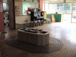 阪急淡路駅から商店街を抜けてすぐ。吹き抜けのある4階建てで、昼間の保育のほか夜間保育・病後児保育・一時保育、そして学童保育も行なわれています。これらの特別保育は、ずっと前から「必要な人がいるからやってきた」とのこと。園長の話をうかがううちに、そもそも福祉事業は民間から始まっていることを思い出しました。