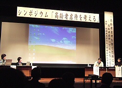 甲南女子大学看護リハビリテーション学部准教授・佐瀬美恵子氏による基調講演後、ほのぼの会(認知症の人の介護者を支える会)メンバー、NPO法人スマイルウェイ(男性介護者の会を運営)代表、門真・守口・四条畷の3市でつくる「くすのき広域連合」保健師によるパネルディスカッションが行われました。