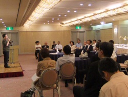 宝塚ホテルで行われた宝塚市国際観光協会の朝食会へ。松本会長(紅葉館)のごあいさつに続いて、中川市長の講演を聴きました。
