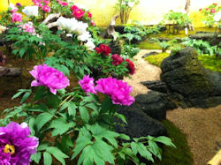訪れたのは、花と緑あふれる「由志園」の日本庭園。満開の牡丹が一年中鑑賞できるよう毎日植え替えを行って、温度や湿度の調整にも細心の注意を払っているとのお話でした。