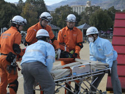 総合防災訓練には私たちも防災服で参列します。ガス・電力・通信ほか企業や団体の協力を求めて行いながら、訓練が年々形骸化していくようで気になっていました。
