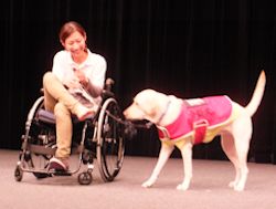 全国の補助犬は盲導犬1043頭、介助犬62頭、聴導犬42頭(宝塚市には盲導犬1、介助犬2)。介助犬を希望する人は1万5000人。人口が日本の約半分のイギリスでは5000頭が活躍中だそうです。