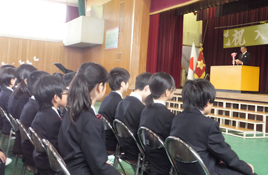 御殿山中学校の入学式で、232名の新入生をお祝いしてきました。