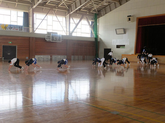 広い体育館の雑巾がけは重労働です。一列縦隊から間をあけながら一気に走っていく、あれ。(私も剣道部時代にやりました^^;)。3年生は手際とスピードが違います。