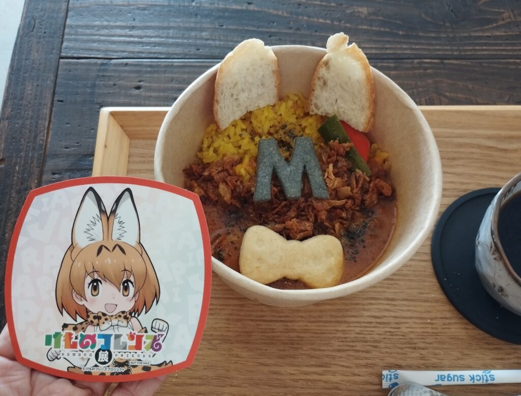 同館と近隣飲食店のコラボ企画もにぎわっていました。特別メニューを注文するとキャラクターカード等がもらえる仕組みで、「SHIZUKU COFFEE」のカレーもかわいい仕上がり。