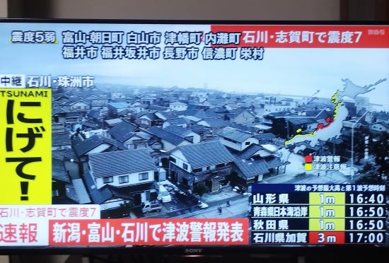 石川・志賀町で最大震度7、マグニチュードM7.6。阪神淡路以上です。